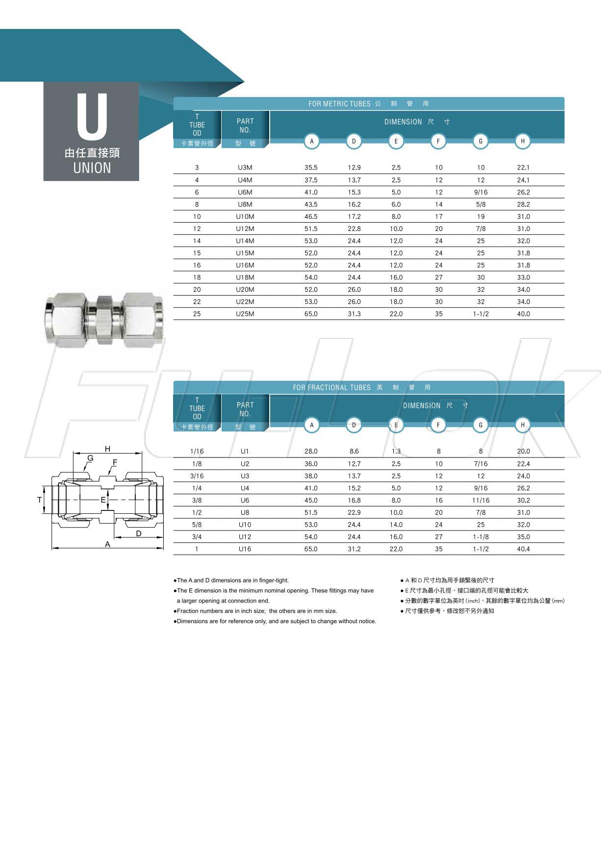 1.公制管用:外径3mm~25mm